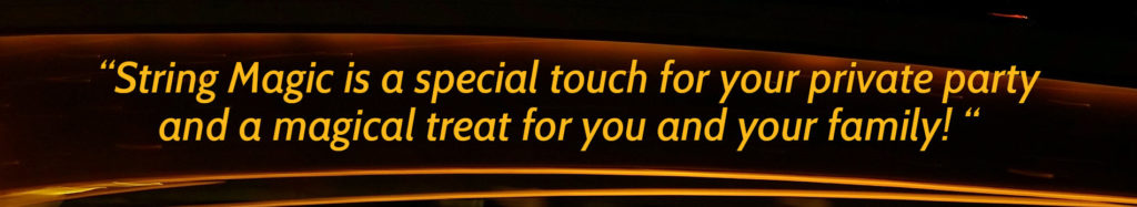 String Magic is a wonderful and fun table-side entertainment. Dave Hutchins is accompanied by magician Mike Powers. Mike will go around, from table to table to blow your mind (and he will!) with his exciting magic while Dave plays your favorite tunes. String Magic is available for private parties and events.